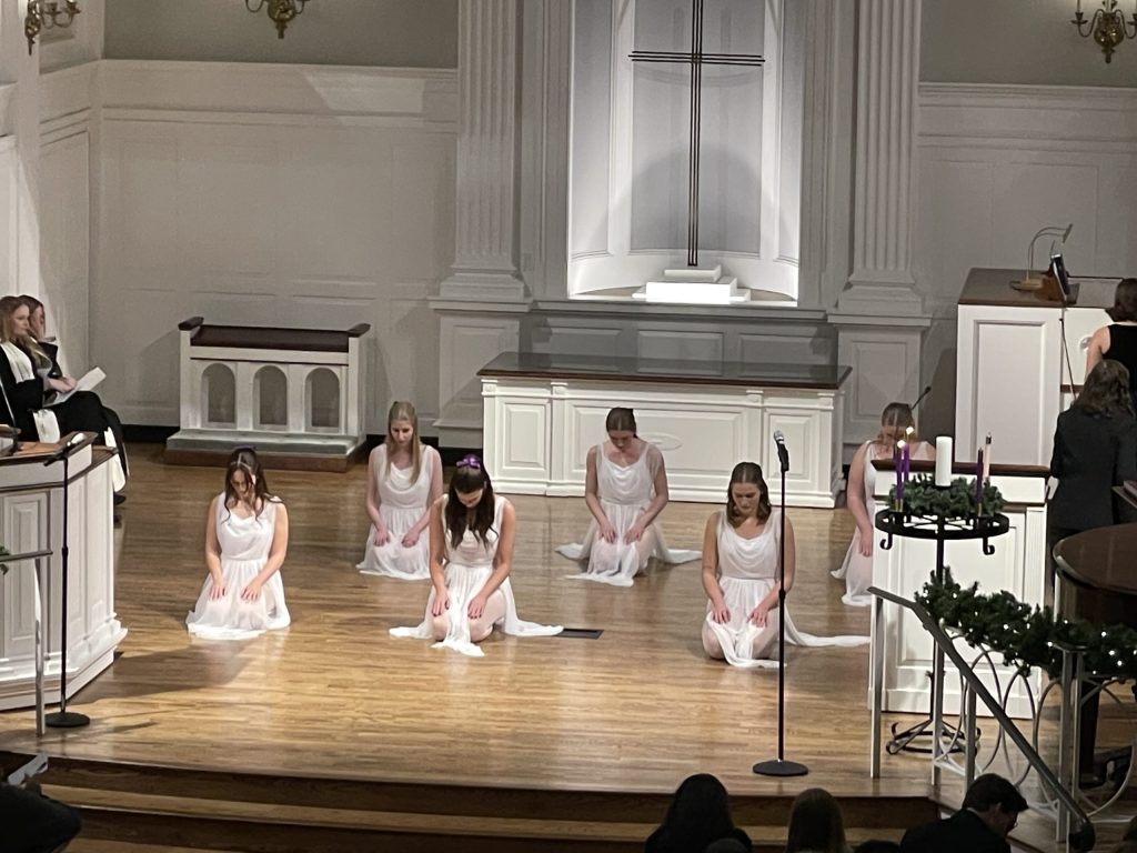 This year, about a dozen of our students gathered with us inside the historic Robert Carr Chapel, which was packed wall-to-wall with students, faculty, families, and neighbors. Scripture was read from Luke, Matthew, and John as the Advent candles of hope, peace, joy, and love were lit.